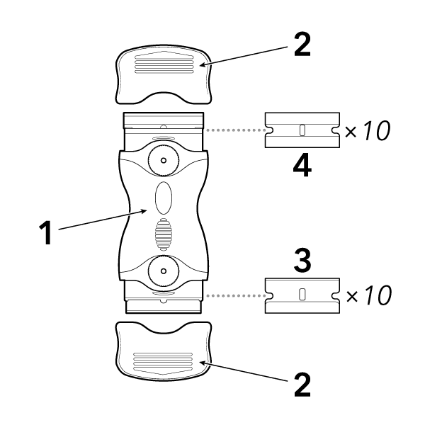 Копчето за безопасност от двете страни на стъргалката осигурява добра стабилност. Скреперът с двоен край има предпазни защитни капаци, които са удобни за съхранение и предотвратяват случайни порязвания.