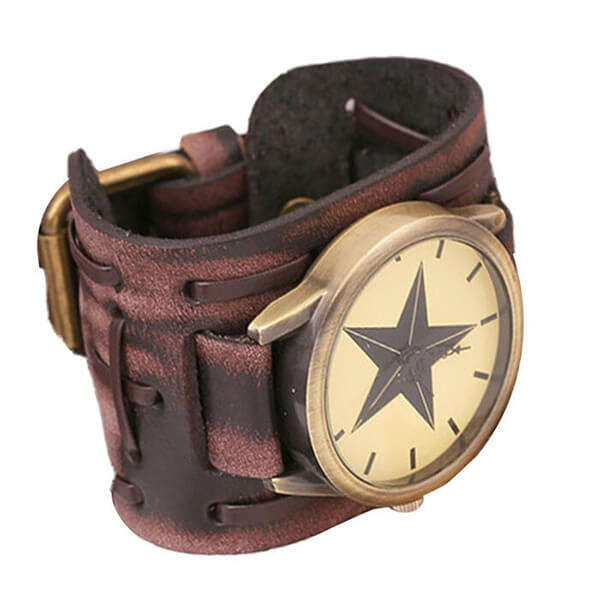 1 Retro Zifferblatt mit Stern 2 Zeiteinstellkrone 3 Angenehmer breiter Gurt