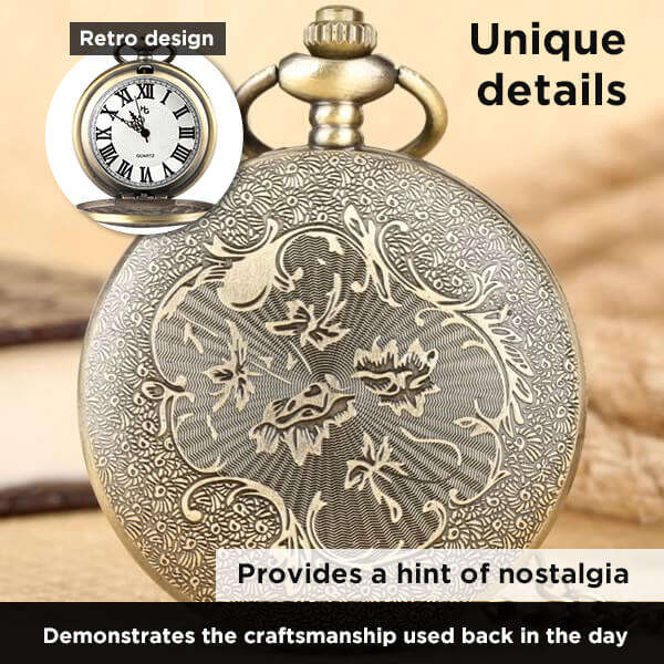 ¡El reloj de bolsillo vintage es una auténtica prenda de valor! Su belleza atemporal es atemporal, y el look clásico le da una dosis de elegancia.