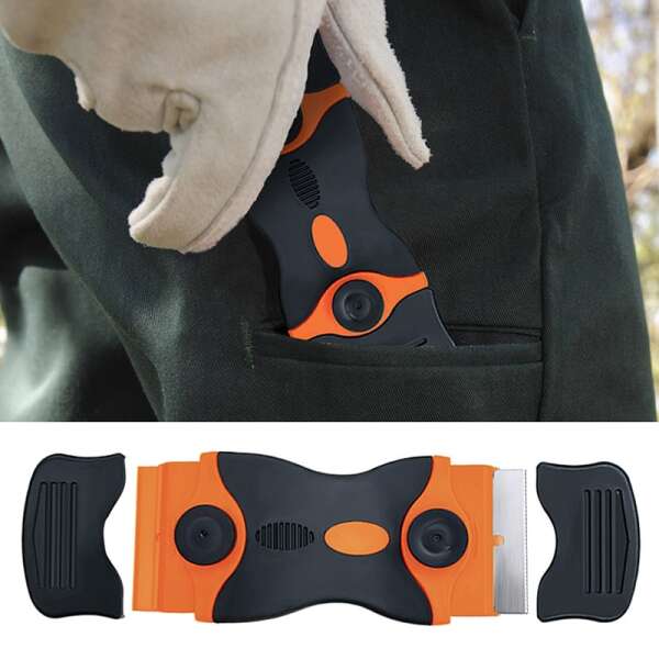 Plastikinis peilis yra aštrus, bet saugus ir nesubraižo paviršiaus. Metalinis peilis gali pašalinti labiausiai užsispyrusias dėmes.