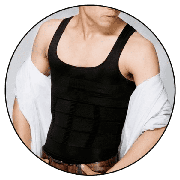 NeoBody é uma peça de roupa em forma de camiseta confeccionada em material compressivo que aperta confortavelmente a região da barriga e esconde o excesso.